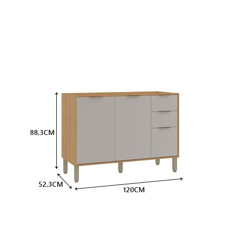 Balcão 1200 3 Portas 2 Gavetas Sem Tampo Colors Freijó/Cinza Chalck – Kits Paraná