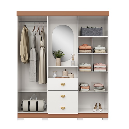 O clássico modelo Capelinha ganhou uma nova roupagem, apresentamos o Guarda Roupa Com Espelho Capelinha Aurora – Vila Rica Móveis combinando modernidade, funcionalidade e estética refinada. Desenvolvido para oferecer praticidade e organização, a elementos curvos e arredondados presentes nos puxadores, criando um visual harmônico e sofisticado. O espelho oval adiciona um charme especial ao conjunto, tornando o produto ainda mais atraente e se destacando entre modelos similares. Disponível em três opções de cores, o guarda-roupa se adapta com facilidade a diferentes estilos de decoração.