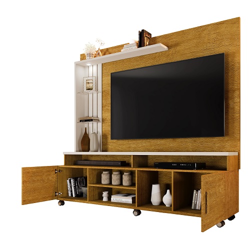 O Home Ocean 1.8 – Carmolar Móveis traz sua imponência e seu Design moderno, deixando o seu ambiente cheio de estilo. Harmonize o ambiente ascendendo sua luminária de LED localizadas na Parte superior. As duas prateleiras de vidro proporcionam sofisticação e elegância para expor seus objetos de decoração. Com dois amplos nichos pode acomodar seus aparelhos eletrônicos com muita organização escondendo os fios indesejados. O acabamento texturizado tem sensação natural da madeira agradável ao toque. Produzido com material Robusto e de excelente qualidade.