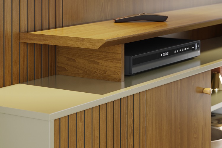 O Home Theater Ares Com Pés – Madetec Móveis é a escolha perfeita para quem busca sofisticação e funcionalidade na sala de estar. Produzida em MDF e MDP com pintura UV, apresenta um design moderno com painel lateral frisado em baixo relevo e porta deslizante no mesmo acabamento. O puxador pontual dourado adiciona um toque elegante, enquanto o tampo e a prateleira superior com borda chanfrada proporcionam um visual refinado. Além disso, acompanha Pés para maior estabilidade. Ideal para TV até 65, tornando seu espaço mais aconchegante e estiloso.